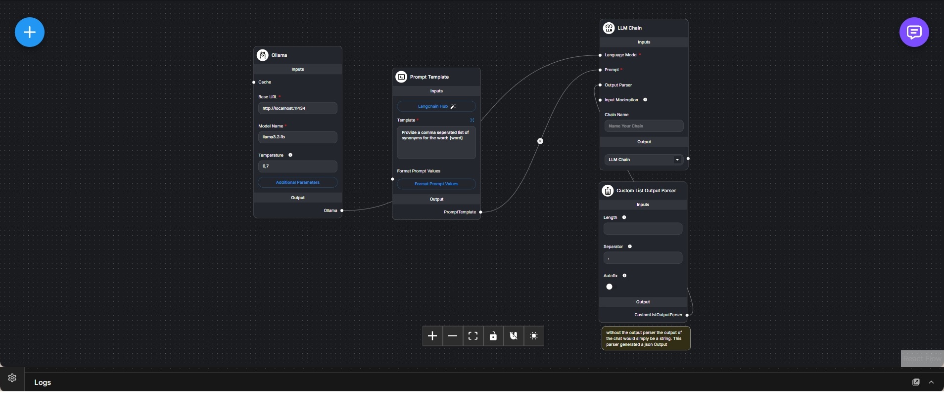 Local workflow that converts a free-form language model response into a structured list using a custom output parser.