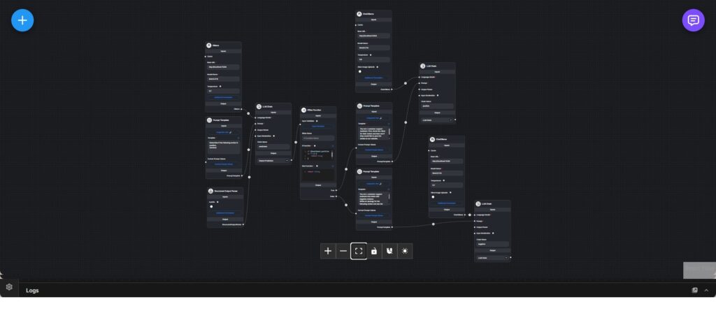 A conditional function node inspects the parsed result and determines which execution path to follow. Based on this decision, the workflow routes the request into different prompt templates and LLM chains, each tailored to a specific response style, task, or intent category.
